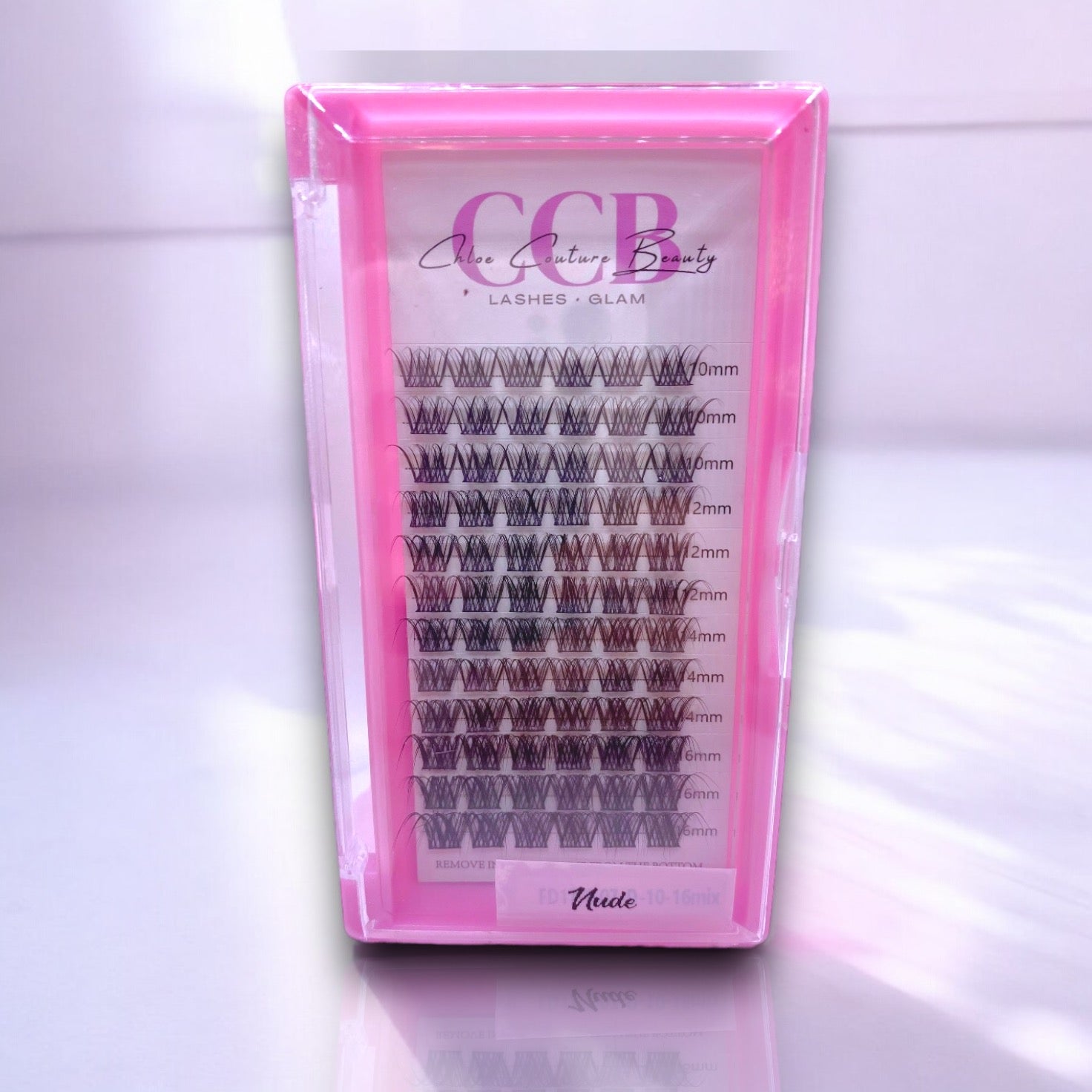 Our Nude DIY lash set, consisting of 72 clusters, is designed to shape your eyes with lengths ranging from 10-16mm.